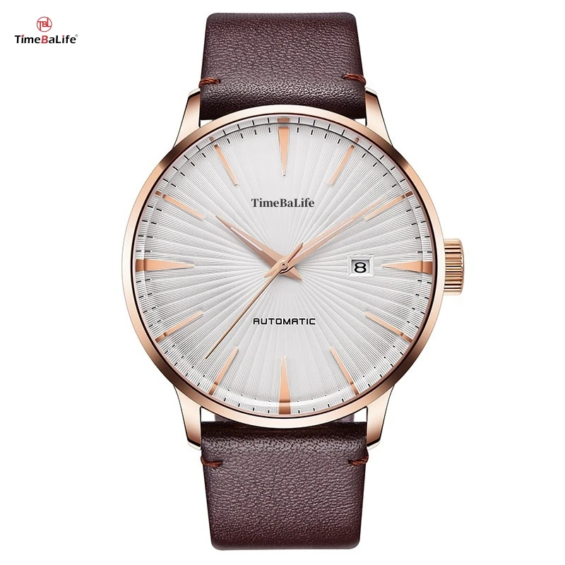 ODM Custom New Best Sell Luxury Automatic Watches Stainless Steel Purple Slim Mechanical Watch for Genuine Leather Strap